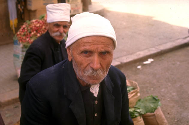 | Location: Beirut Lebanon Druze farmers in the Beirut market A man in a black suit with a sparse white beard and a white hat calls me over and offers me a place to sit. He smiles shakes my hand and clasps my shoulder. |