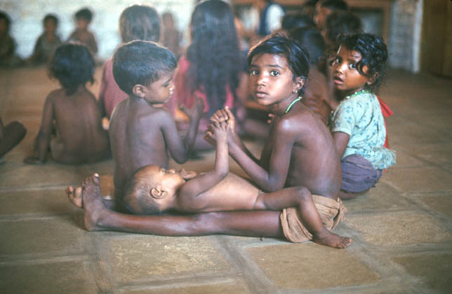 A group of children have come to the Save the Children Fund's building to be given a free lunch.