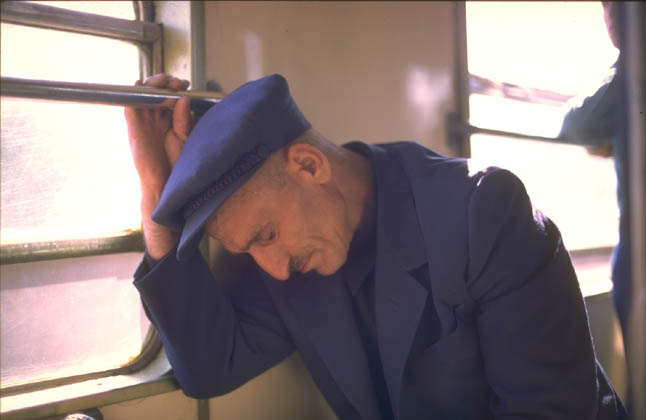 | Location: Central Turkey Sleeping in the aisle of the Teheran Express A man sleeps by a window seat in the aisle of the train seemingly unaware of the continuous stream of passengers and vendors walking from car to car. |