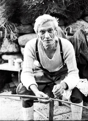 An old shepherd in his woolen sweater