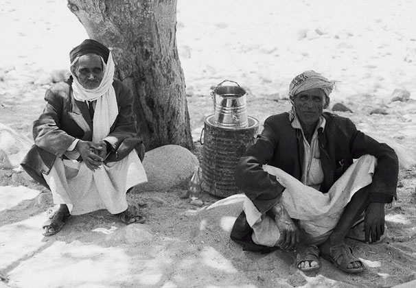 Two Bedouin rest in the shade of an Acacia