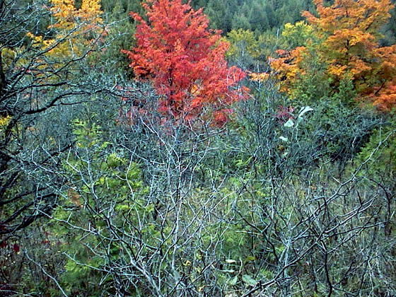 | Location: Bolton Ontario Late fall colours blend into forest green The Humber Valley Heritage trail runs from Bolton to Palgrave along the Humber river. Each season brings new colors and textures to the landscape. |