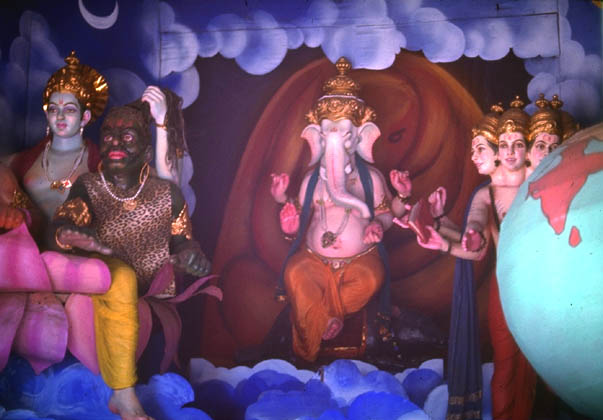 | Location: Madras India For one rupee you can view this holy display On a sidestreet in Madras a local wax museum offers a showing of members of the Hindu pantheon for one rupee. |