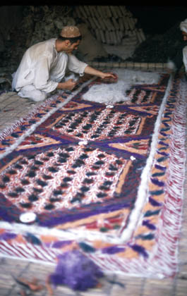 | Location: Herat Afghanistan Ageold carpetmaking techniques are still used In the shops on Herat traditional methods of carpet making are still taught by fathers to their sons who will carry on the family tradition. |