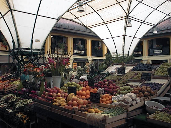 | Location: Budapest Hungary The local market in Pest A wide variety of fruits and vegetables are available in this colourful market on the Pest side of the river in Budapest. Vendors sell every imaginable kind of produce. |