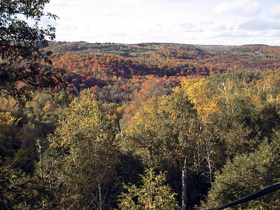 | Location: Bellefontaine Ontario The Bruce Trail takes you from the tip of the Bruce Penninsula at Tobermorey all the way to Niagara Falls. The grandeur of the Ontario Autumn Forests spread a pallete of colour across the landscape. |