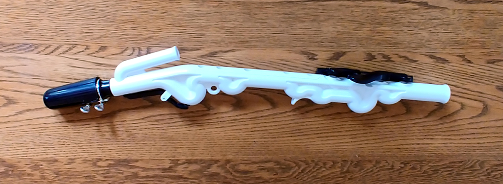 which is a sort of plastic soprano saxophone in the key of C with a